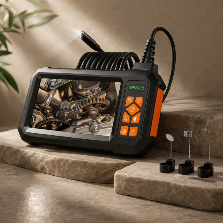 Inspekční kamera s 5m kabelem vám umožní snadno zkontrolovat i těžko dostupná místa. Díky integrovanému displeji, LED osvětlení a flexibilní sondě uvidíte přesně to, co je jinak skryté. Ideální pro auto, potrubí i domácí opravy.