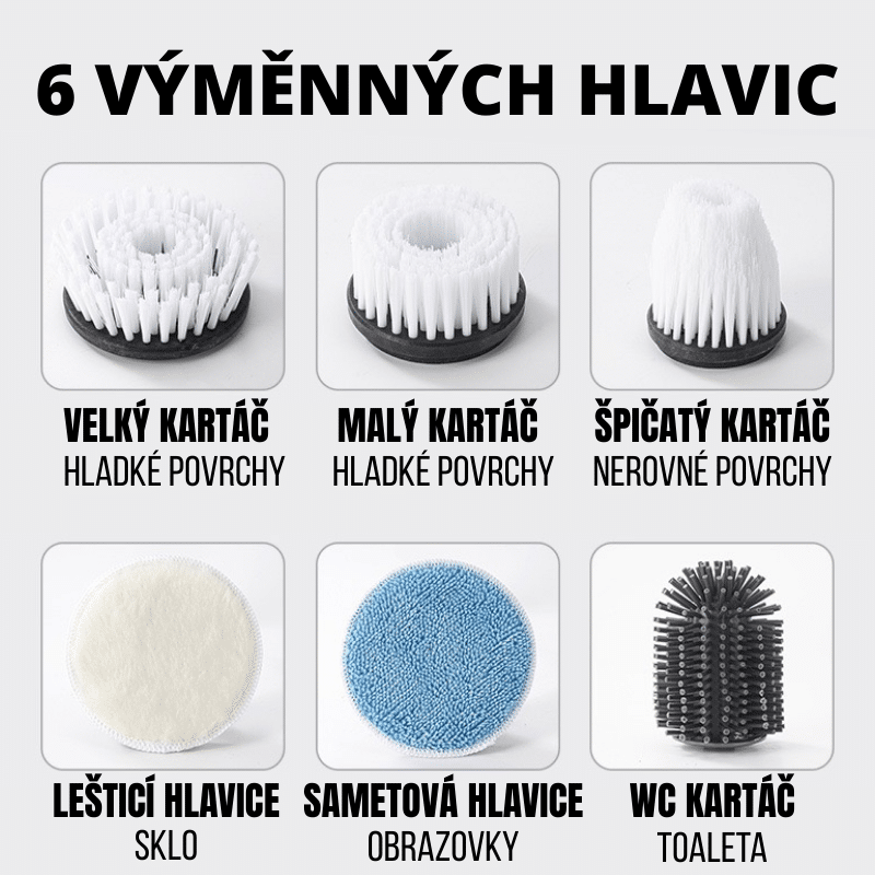 Bezdrátový rotační čisticí kartáč se 6 hlavicemi