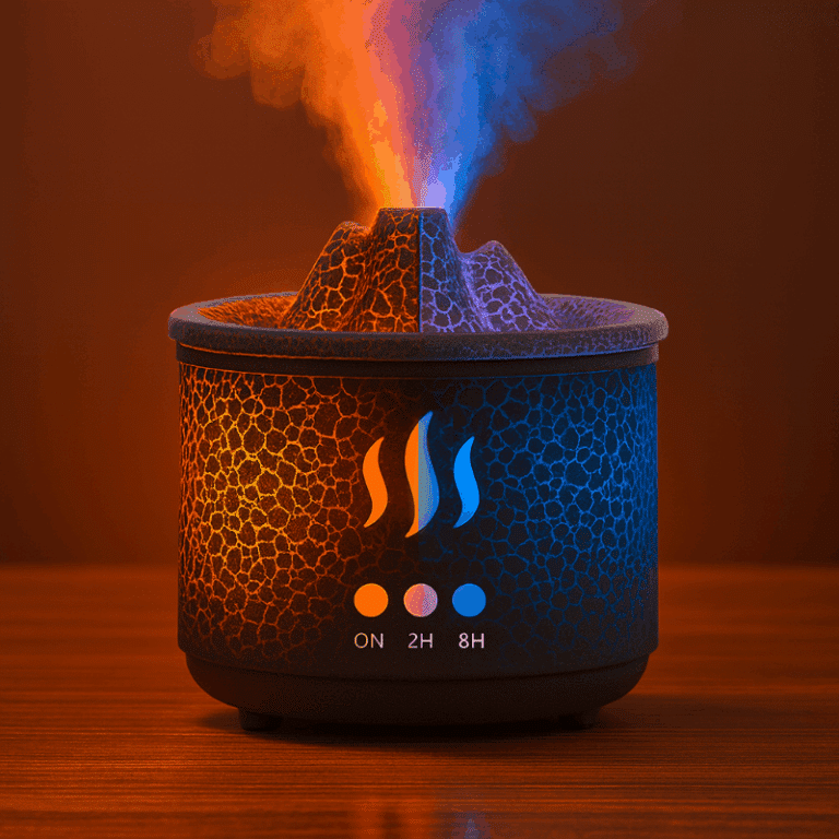 Proměňte svůj domov v harmonickou oázu pohody s ultrasonickým difuzérem ve stylu sopky. Užijte si uklidňující efekt teplého i modrého světla, zatímco jemná mlha přirozeně zvlhčuje vzduch a navozuje relaxační atmosféru.